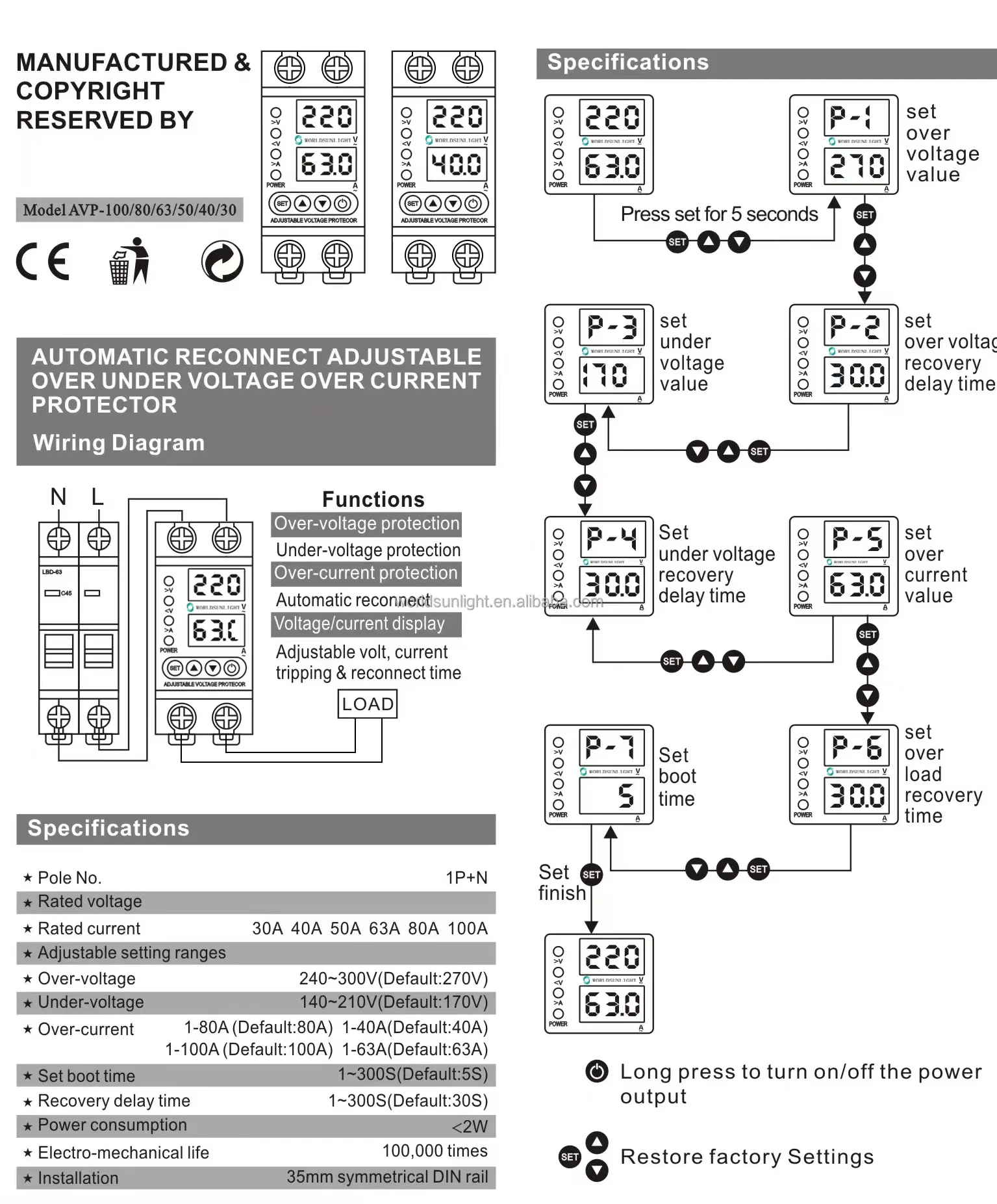 1-80A(Default:80A) 1-40A(Default:40A)1-100A(Default:100A) 1-63A(Default:63A)